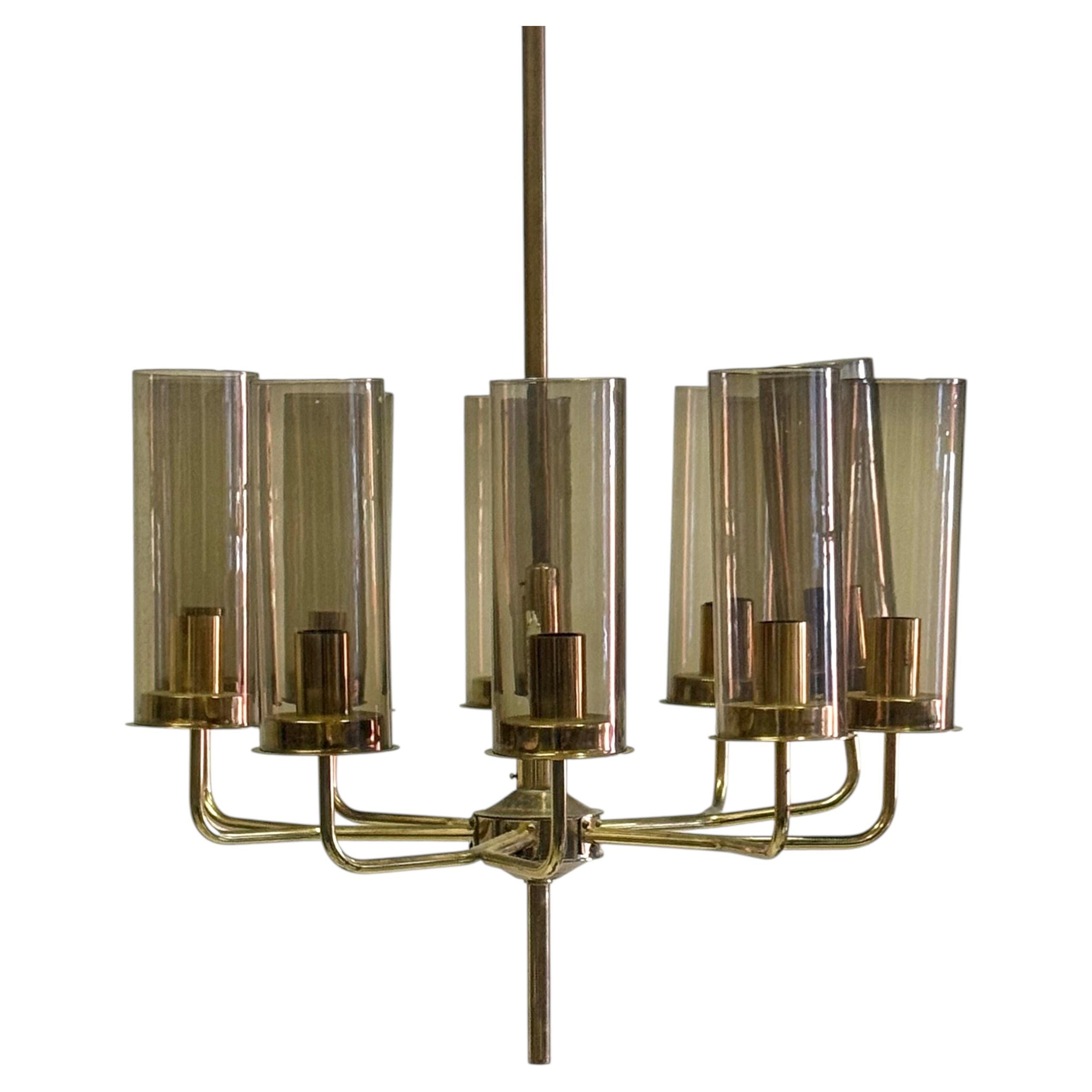 Hans-Agne Jakobsson Markaryd Araña de seis brazos de cristal de latón, 1960