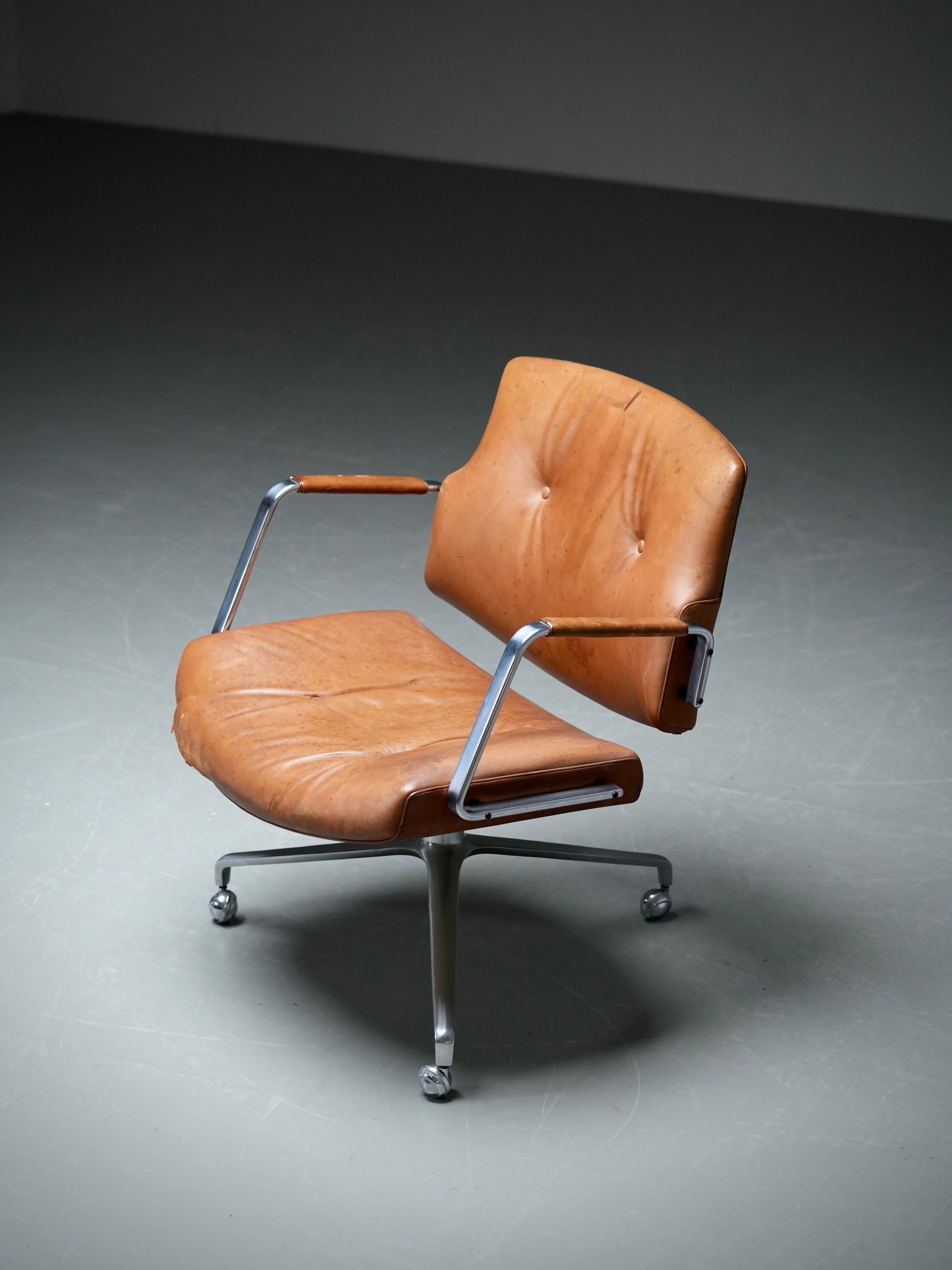 Fabricius & Kastholm FK87 en cuero coñac patinado, producción Alfred Kill, años 60. Este rarísimo sillón de salón modelo "FK87" es uno de los diseños más notables de Preben Fabriciu...