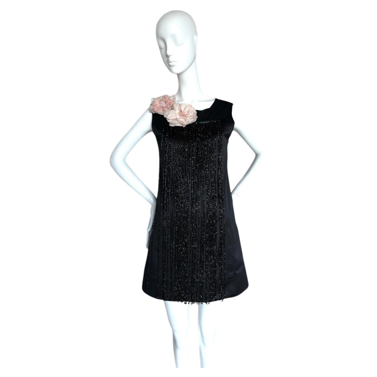 Anna Molinari para Blumarine Vintage 1990's Negro azabache con preciosos abalorios en cascada y flores rosa empolvado Talla IT44 Nwt's, sin defectos Medidas en centímetros en horizon...