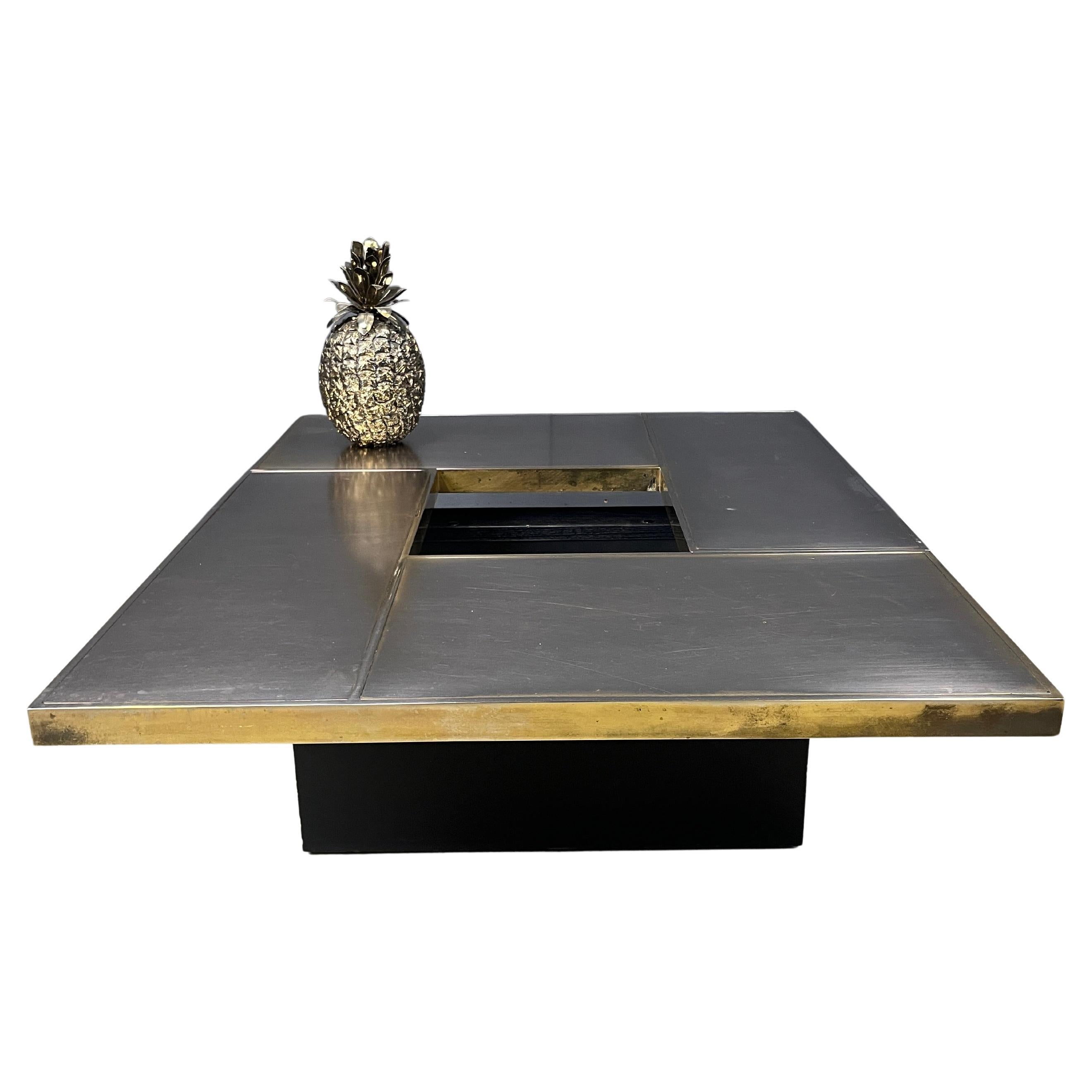 Mesa de centro chapada en latón de alta calidad de belgochrom.