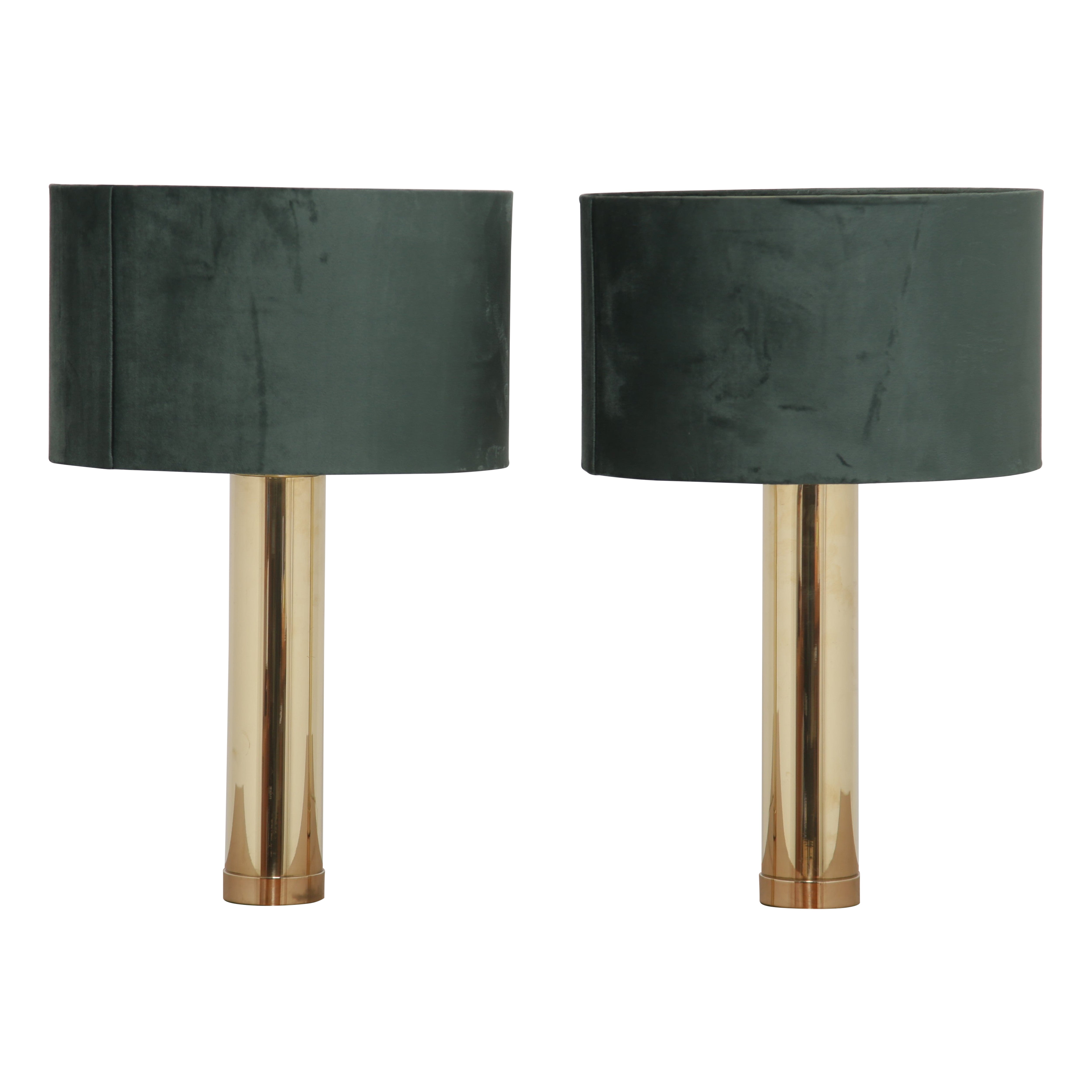 Conjunto de dos lámparas de mesa de Bergboms fabricadas en latón. Diseño sencillo y elegante, lámparas pesadas y de alta calidad, como sospechas del fabricante. Las lámparas están re...