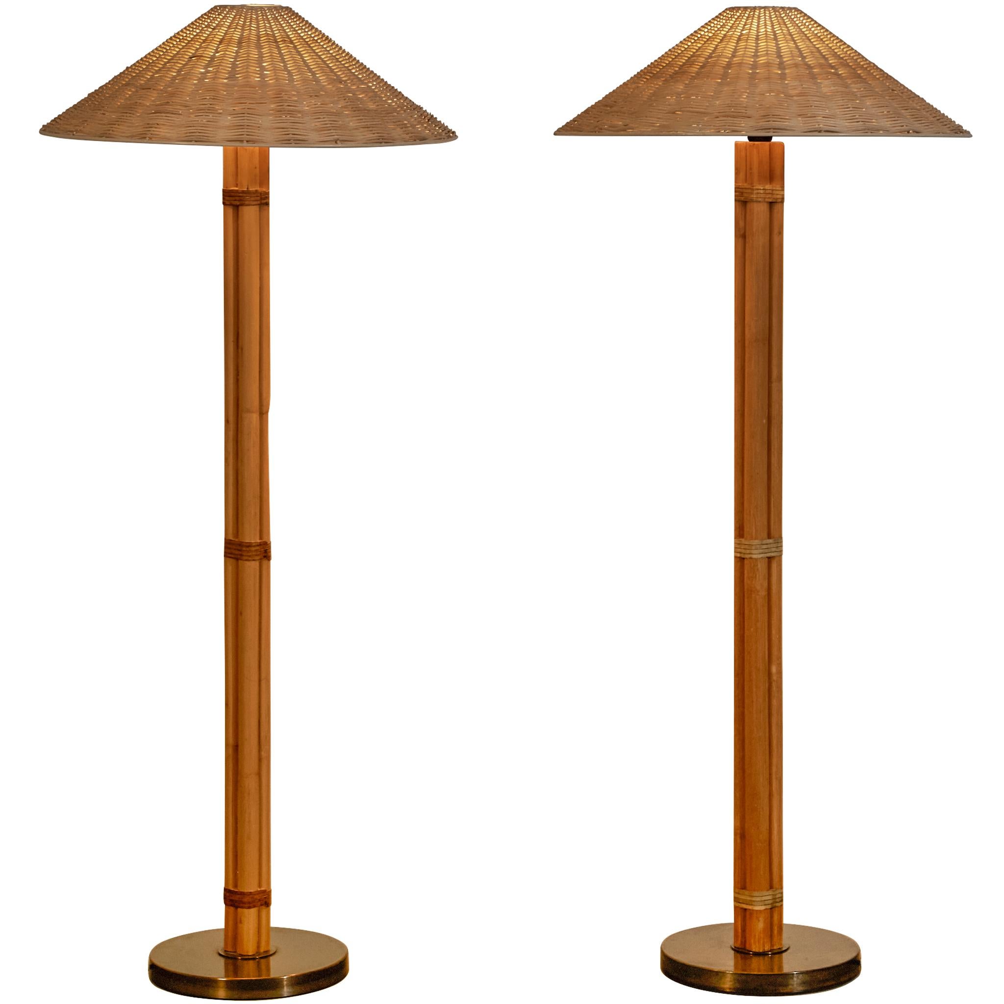 Bergboms, par de lámparas de pie, modelo "G 105", bambú, caña, latón, Suecia, años 60