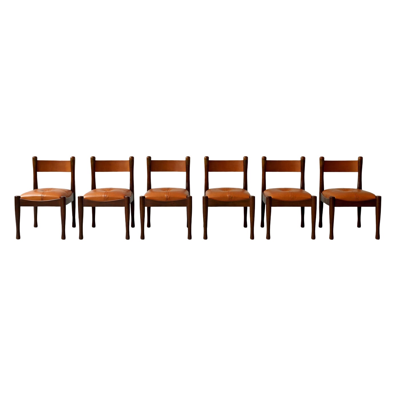 Sillas Maya de Giotto Stoppino para Bernini, Italia, años 70, asientos de cuero marrón.