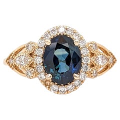 Antiguo Anillo Victoriano de Oro Amarillo de 18 ct con Zafiro y Diamantes en Racimo Ovalado