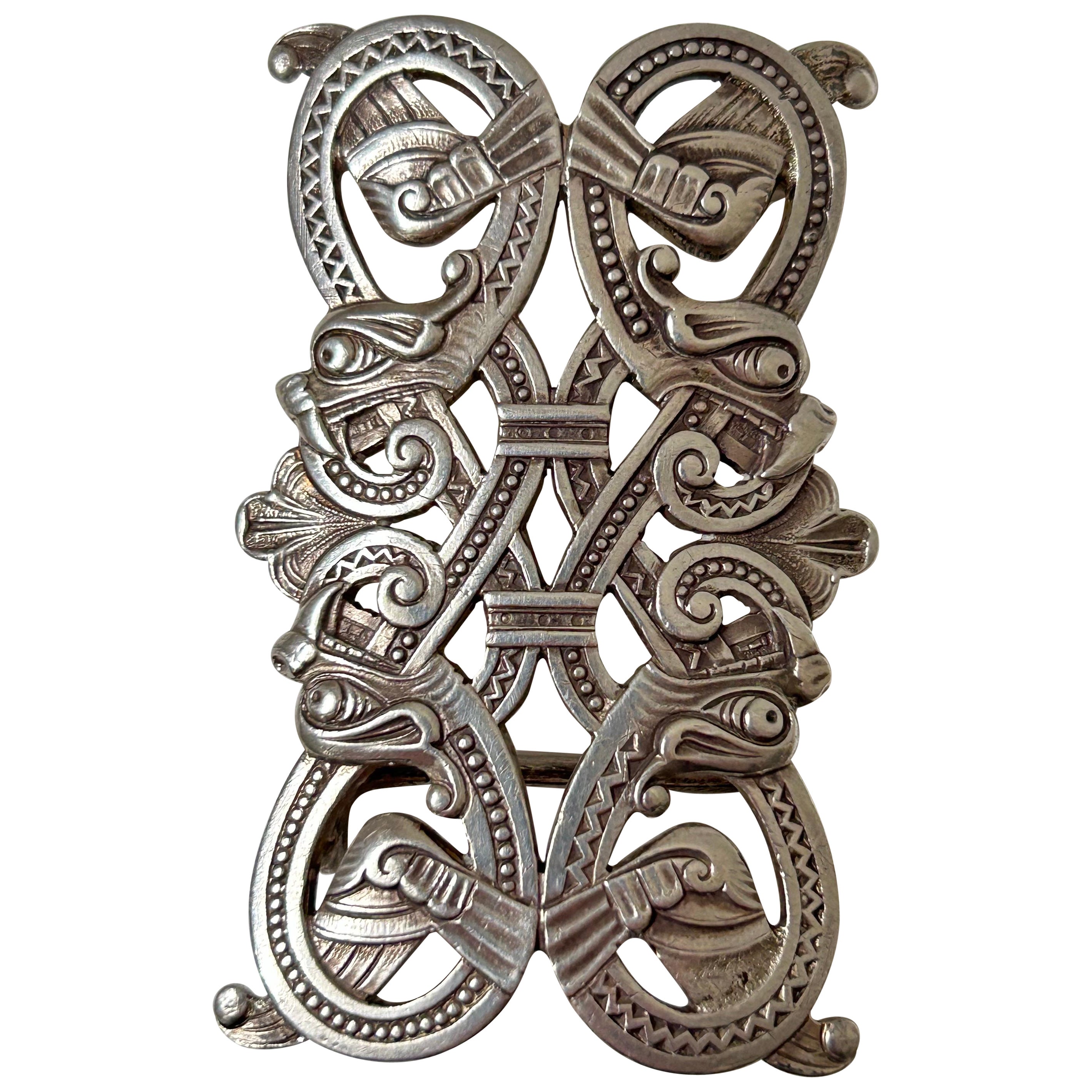 Hebilla de cinturón Art Nouveau de Gustav Gaudernack (1865-1914), plata 830, ejecutada por David Andersen, Noruega, hacia 1895-1900. Hebilla de cinturón de forma rectangular en plat...