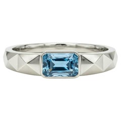 Anillo solitario vintage de oro con diamantes y topacio azul de Londres talla esmeralda de 5 quilates