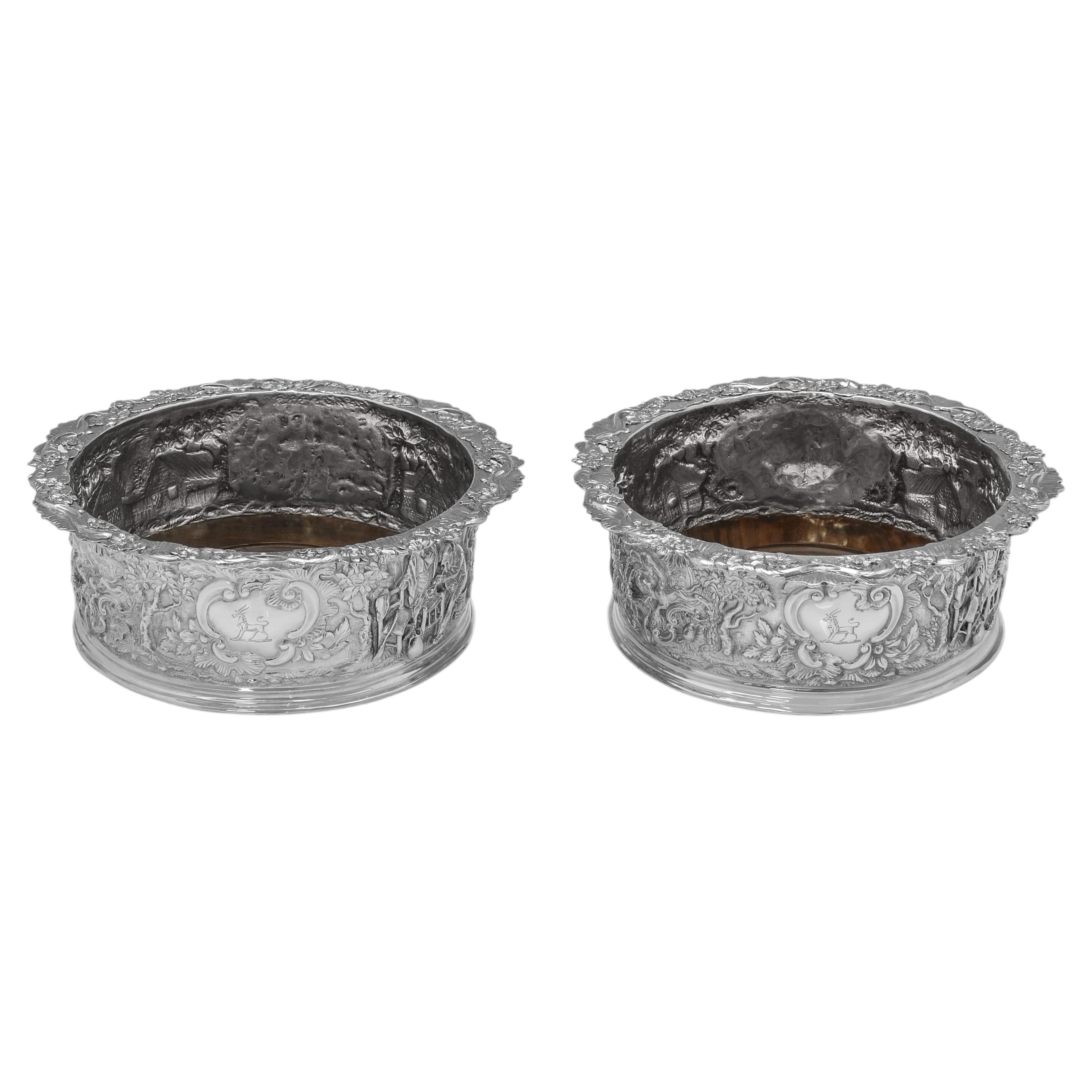 Magnífico juego de 12 platos antiguos de Jorge IV, de forma circular clásica y con un borde de estilo renacimiento rococó que muestra un intrincado diseño de conchas y follaje que se...