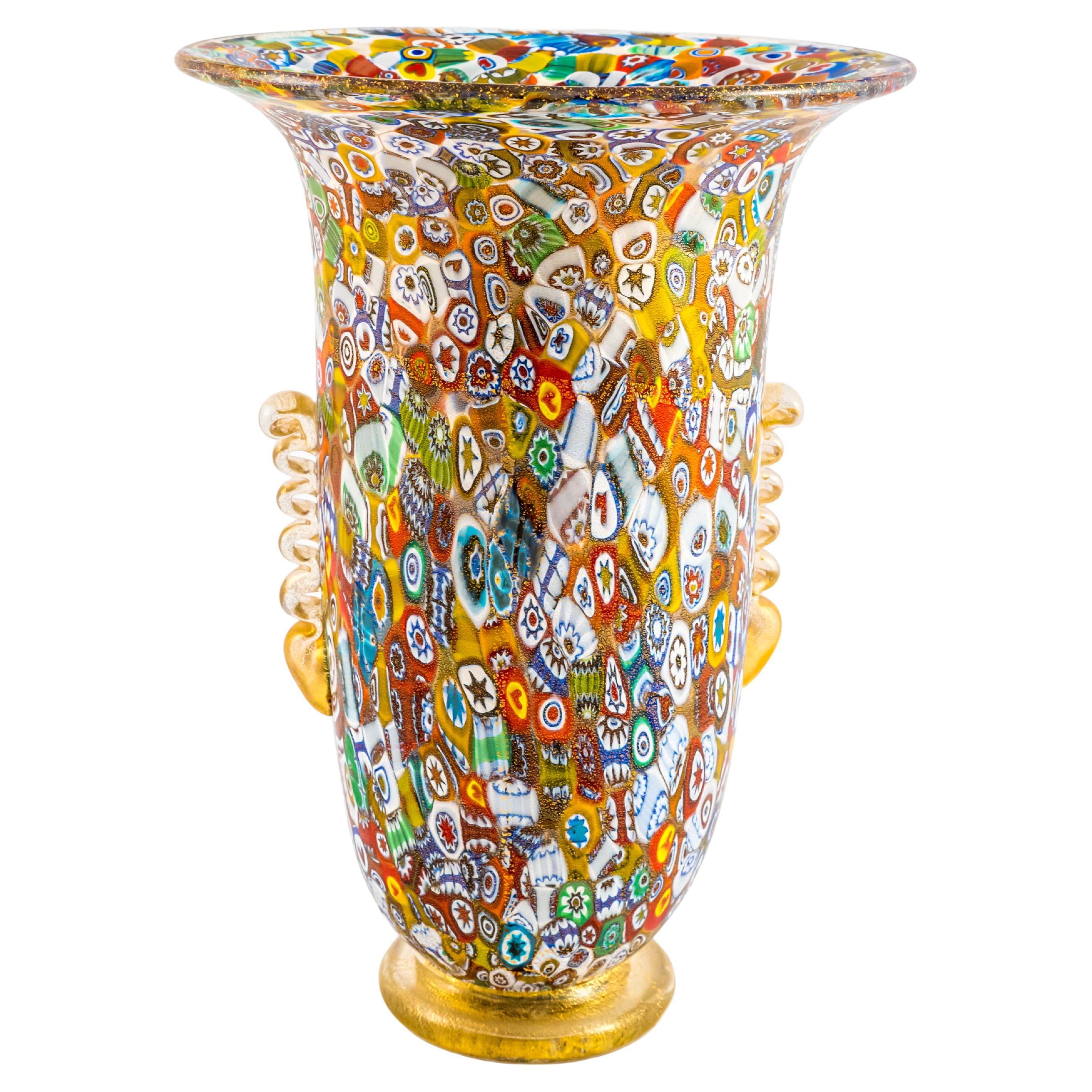 Jarrón de cristal artístico Fratelli Toso Fenicia, Murano, principios del siglo XX