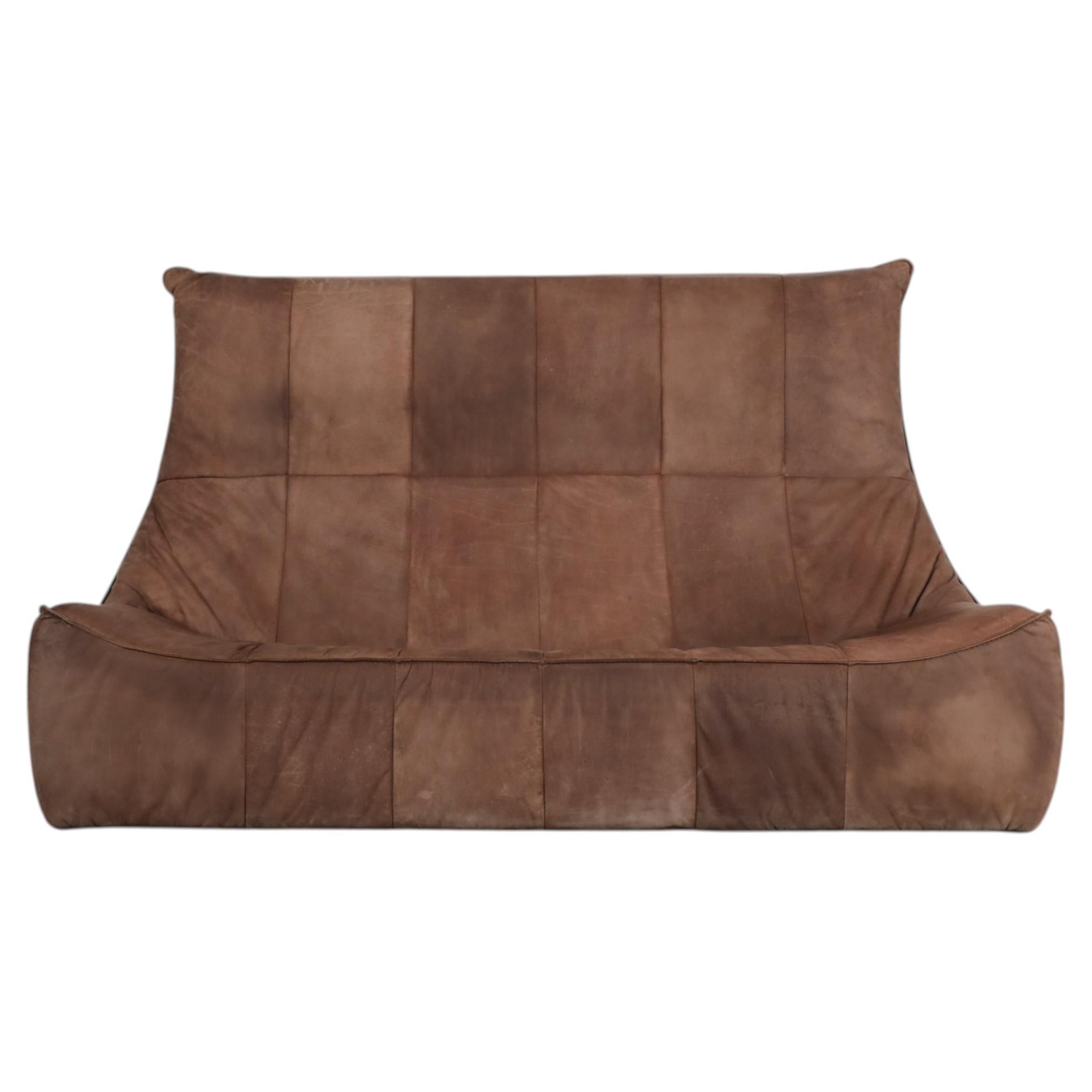Inusual loveseat de respaldo alto en piel natural Gerard Van Den Berg, con ligeros detalles de mechones por toda la pieza que crean un sutil dibujo. La expresión de esta pieza radica...