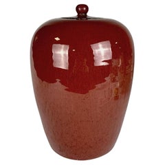 Antiguo jarrón de porcelana china de color sangre de buey jengibre Tapa de madera tallada XIX