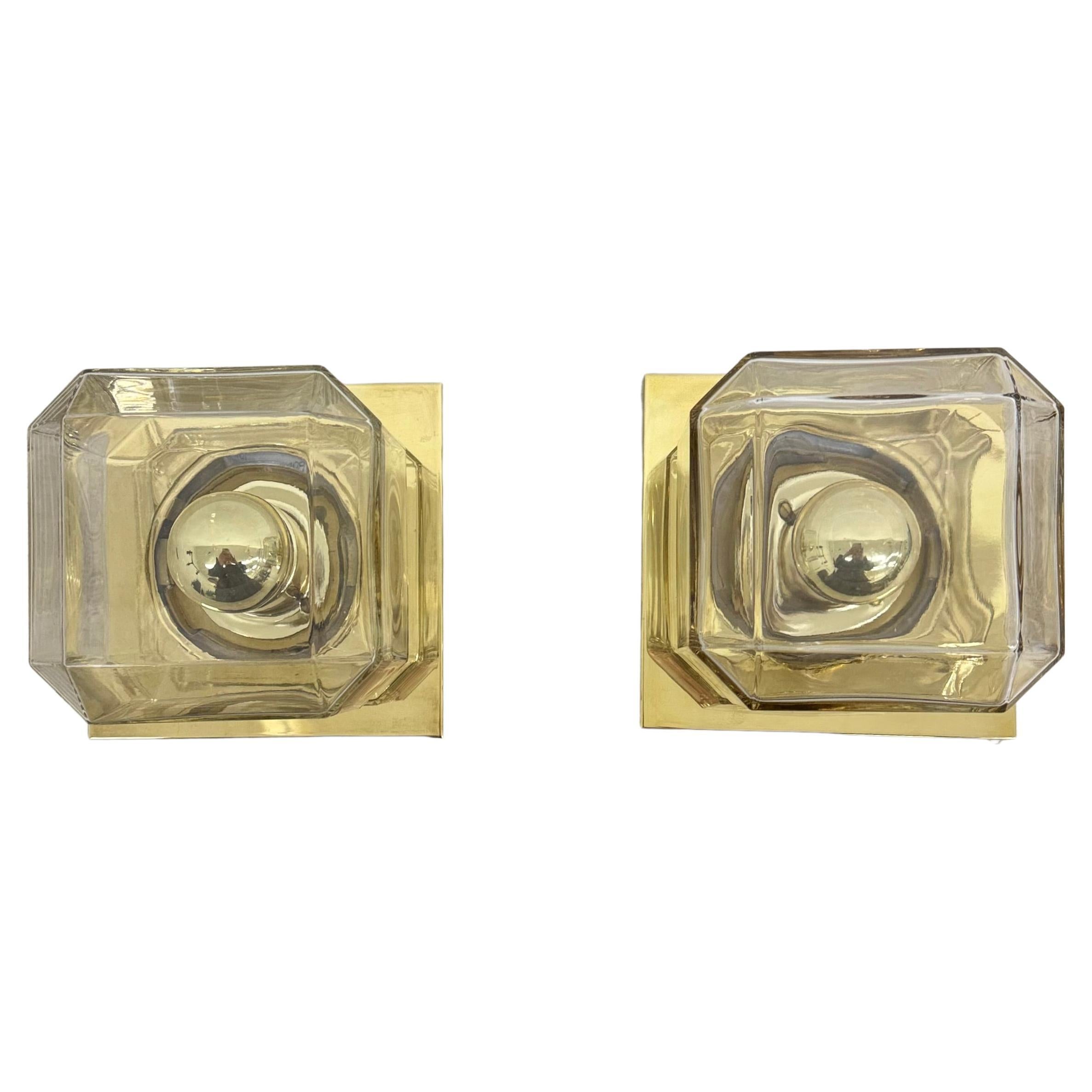 Par de Preciosos apliques con un diseño único de "hierro" de Glashütte Limburg, Alemania. Fabricado a mediados de siglo, hacia 1960. Cuadrados de "hierro" negro incrustados en grues...