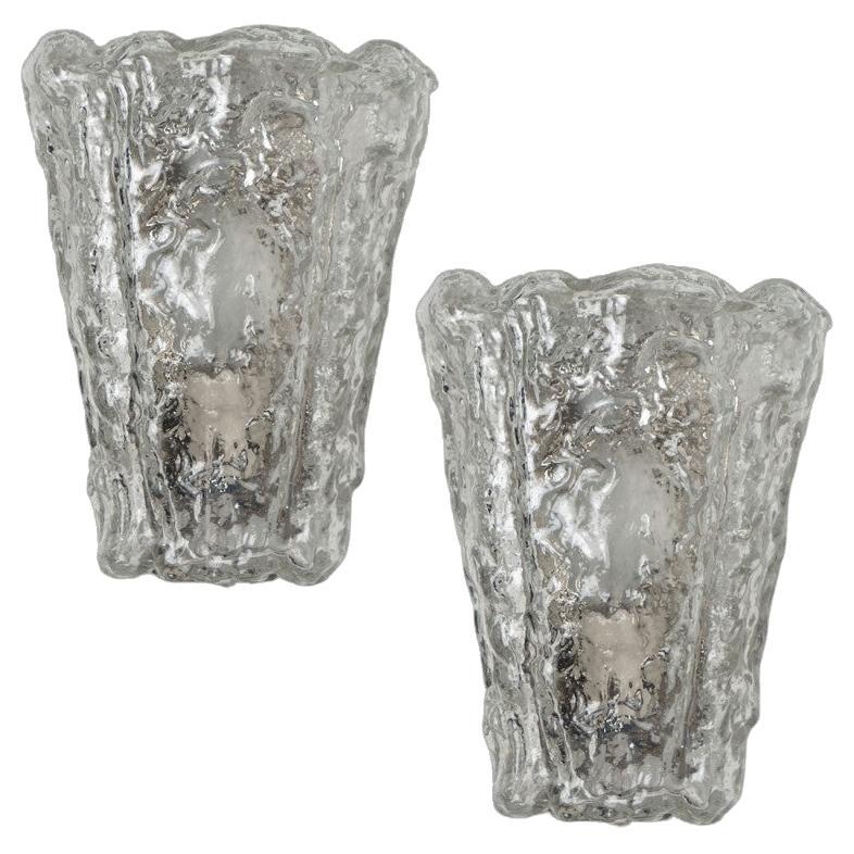 1 de 2 Apliques de cristal de Murano texturado fabricados por Hillebrand Leuchten, Alemania, hacia 1970-1979.