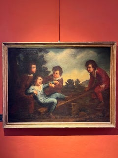 Perros jugando en el paisaje English School, finales del siglo XVIII círculo de Thomas Gainsborough (inglés, 1727-1788) óleo sobre lienzo, enmarcado enmarcado: 18 x 22 pulgadas lienz...