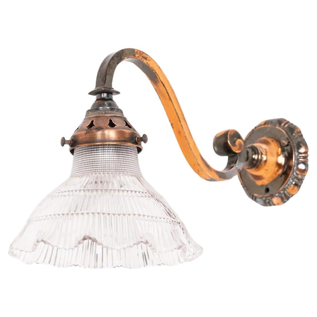 Antique French Holophane Frill Glass Brass Wall Task Kitchen Light Lámpara