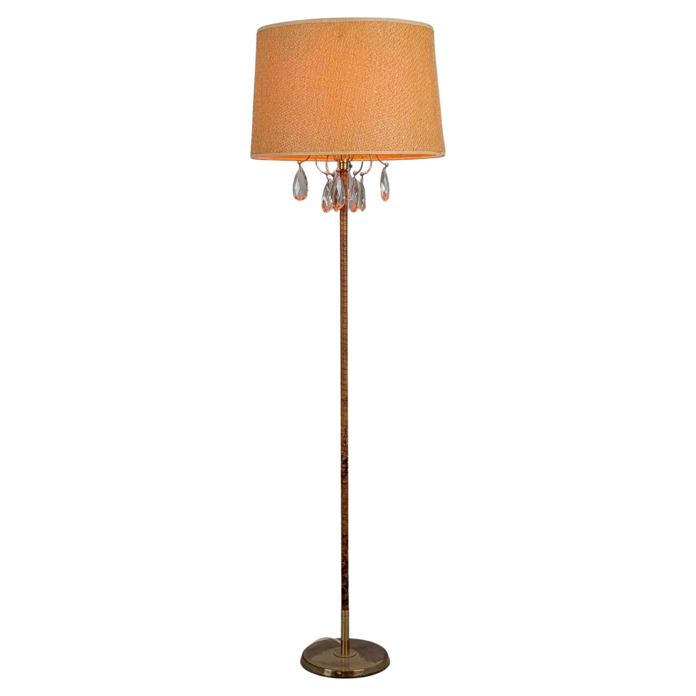Paavo Tynell para Idman Lámpara de mesa '9224' de latón y cuero, Finlandia, años 50