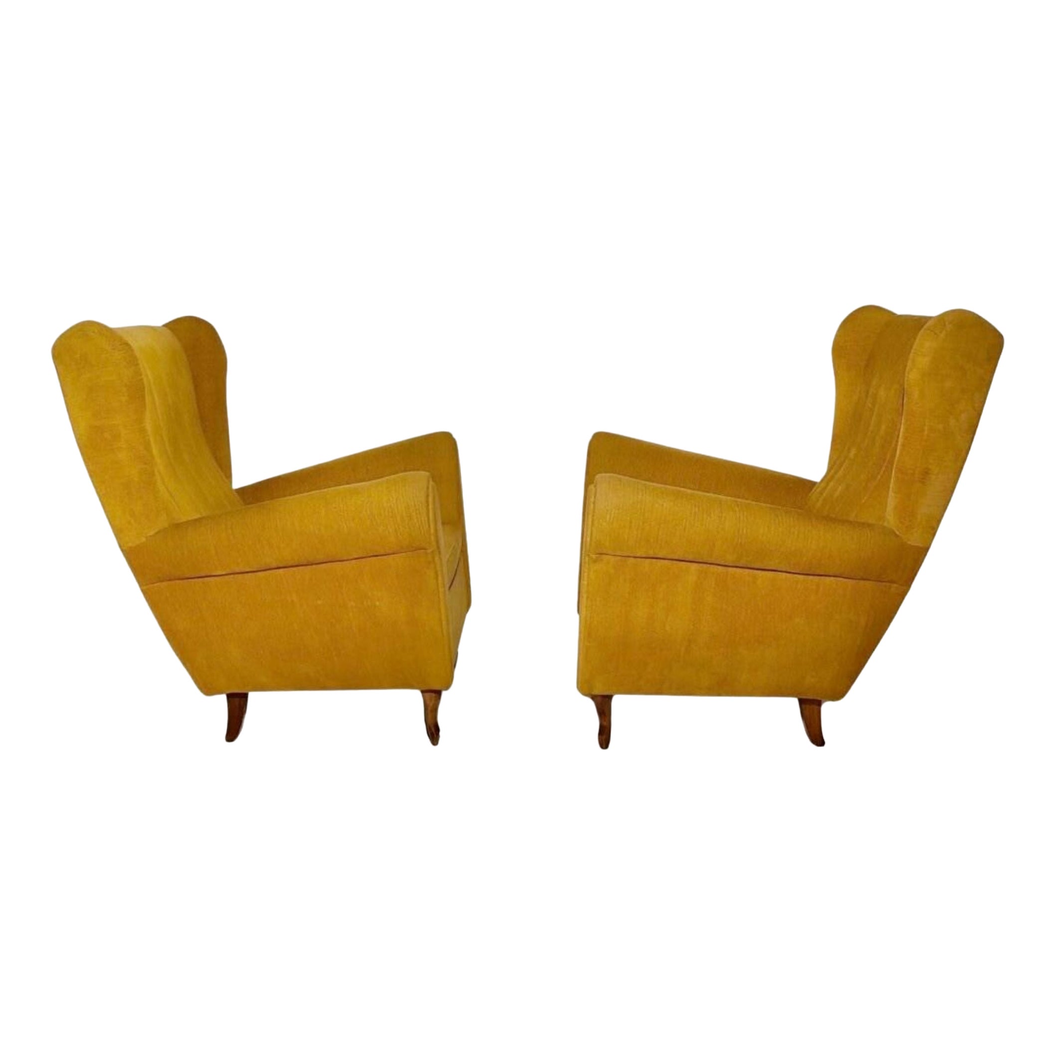 Pareja de Sillones de Terciopelo Vintage Italianos Modernos de Mitad de Siglo Gio Ponti para ISA