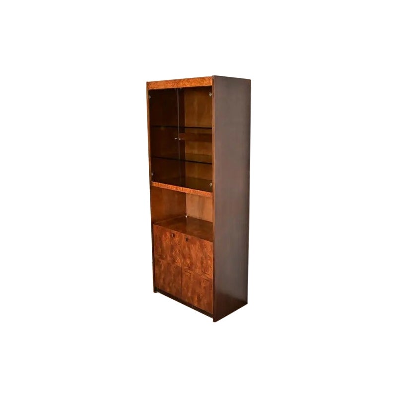 Jack Cartwright para Founders Librería o mueble bar iluminado de madera de burl, años 70