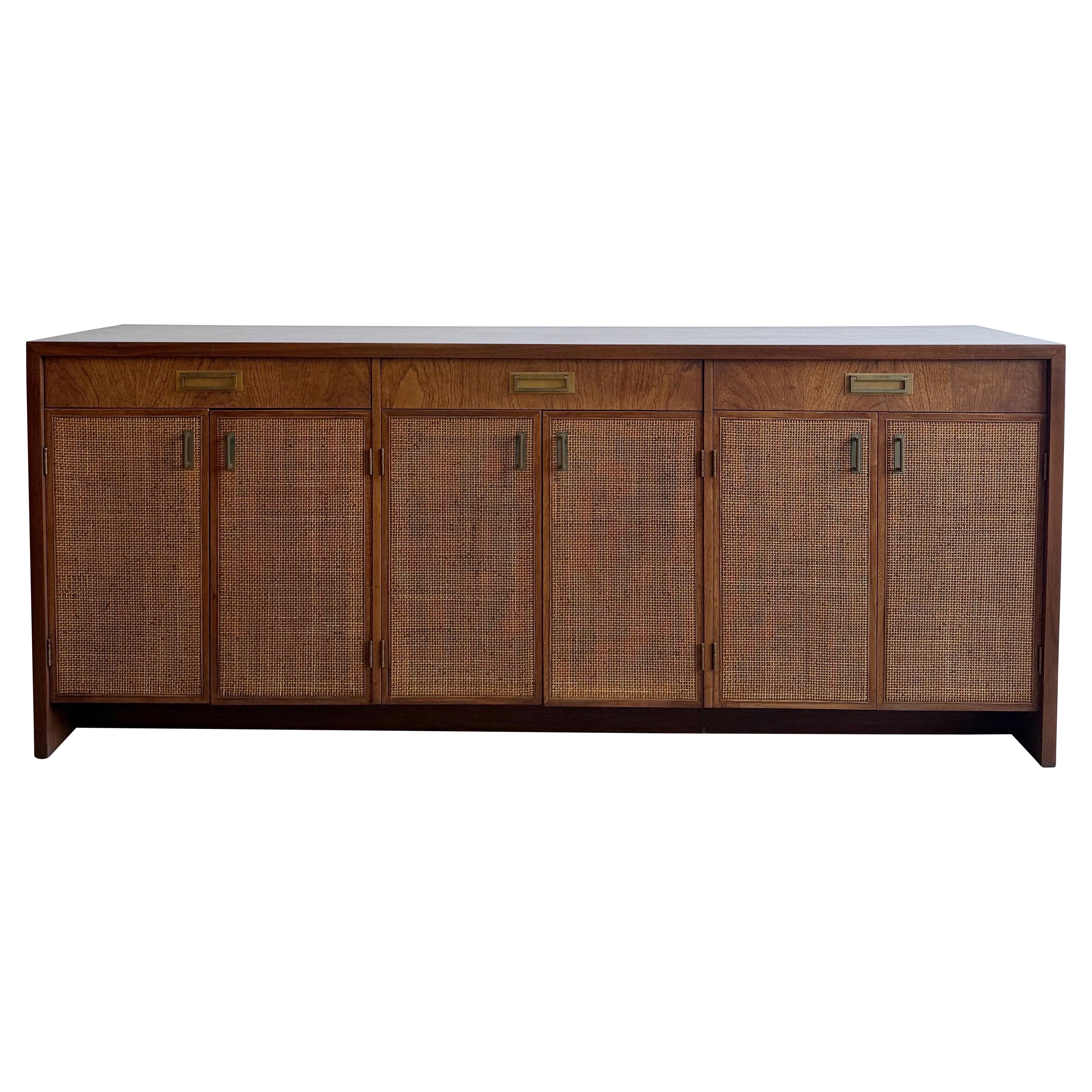 Jack Cartwright para Founders Credenza de mediados de siglo con frente de nogal y caña
