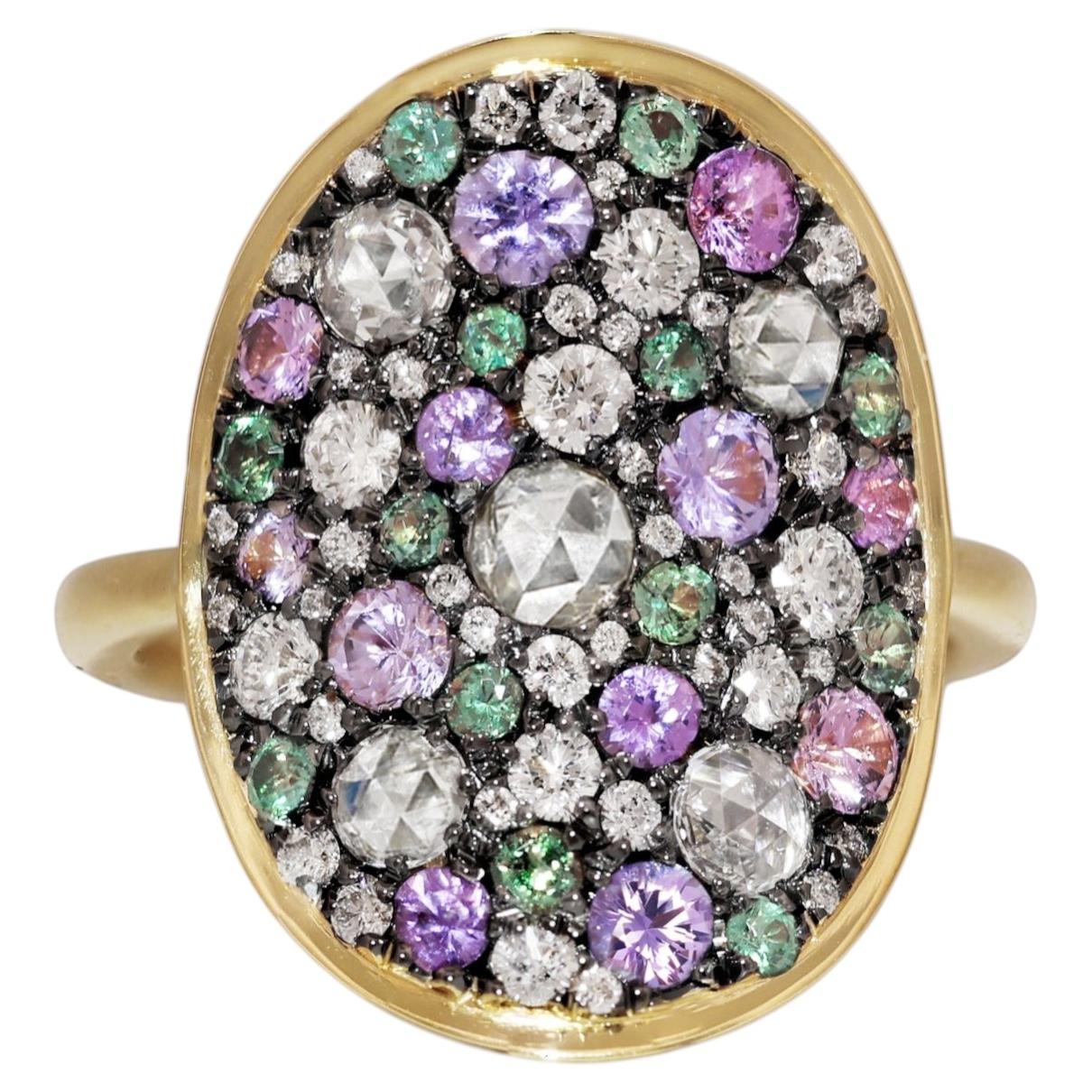Anillo Pavé de Diamantes Zafiro Violeta Alejandrita Oro Amarillo