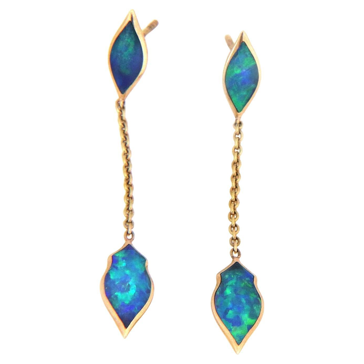 Pendientes Colgantes, Brillantes, Incrustación de Ópalo "High-Grade", Lágrima, Oro de 14kt by Kabana