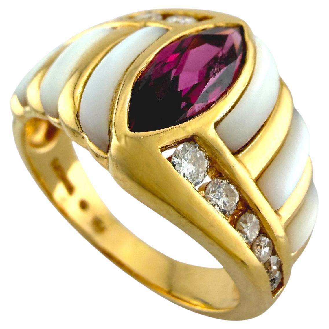Anillo Kabana de Diamantes Madreperla - Anillo redondo de oro rosa de 14k SZ 6 3/4