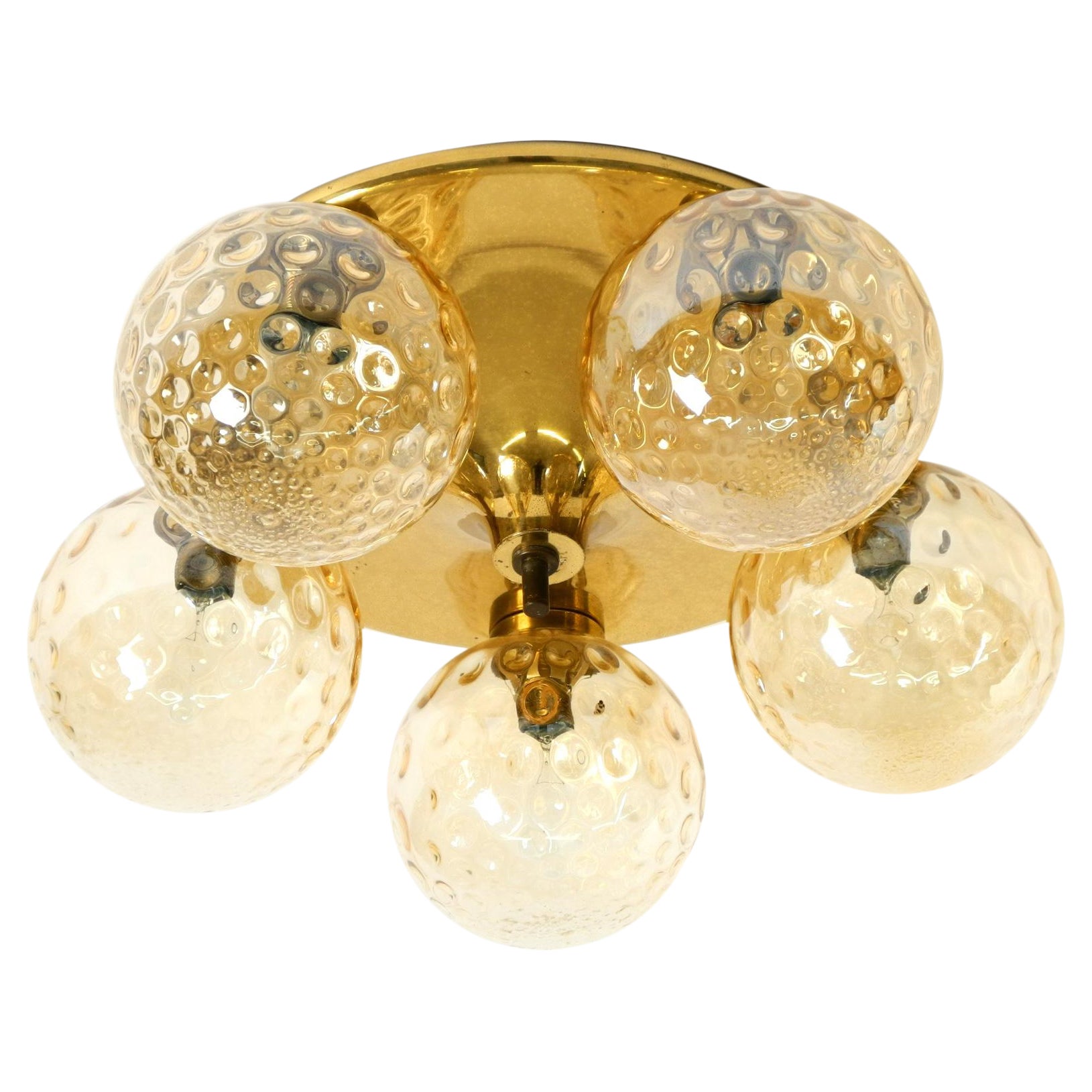 Lámpara de techo de latón de la Era Espacial de los años 60 con 8 bolas de cristal de Kaiser Leuchten
