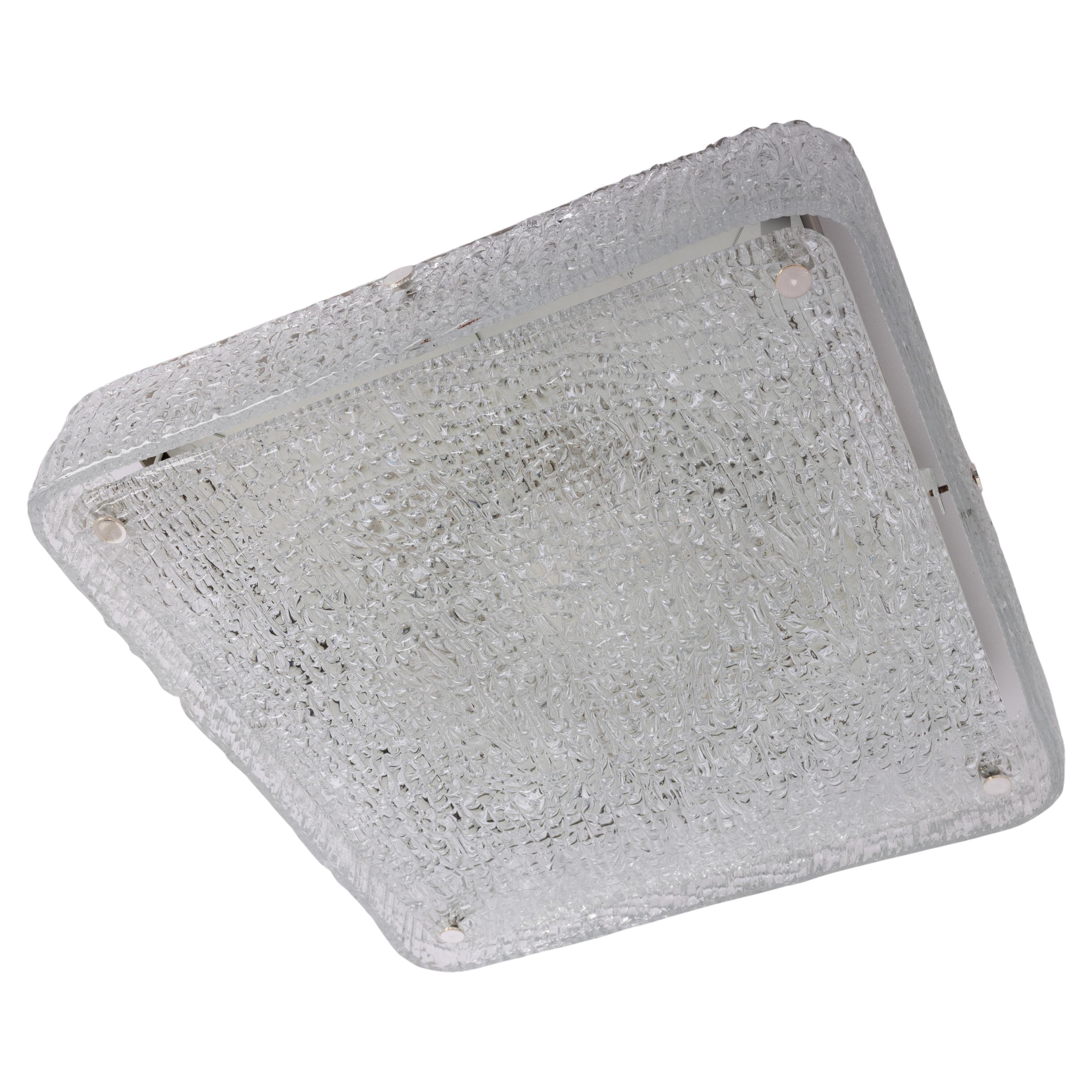 Maravilloso empotrable cuadrado de cristal de Murano fabricado por Kaiser Leuchten en Alemania en la década de 1970.