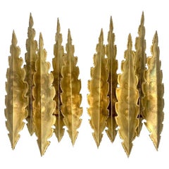 Apliques italianos de mediados de siglo de 1950 en latón y cristal opalino