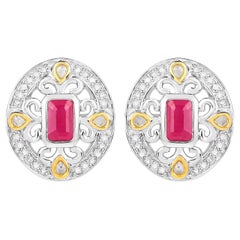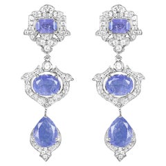 Art Decó 2.9 TCW Diamante 2.45 TCW Aguamarina Platino Oro Blanco Pendientes