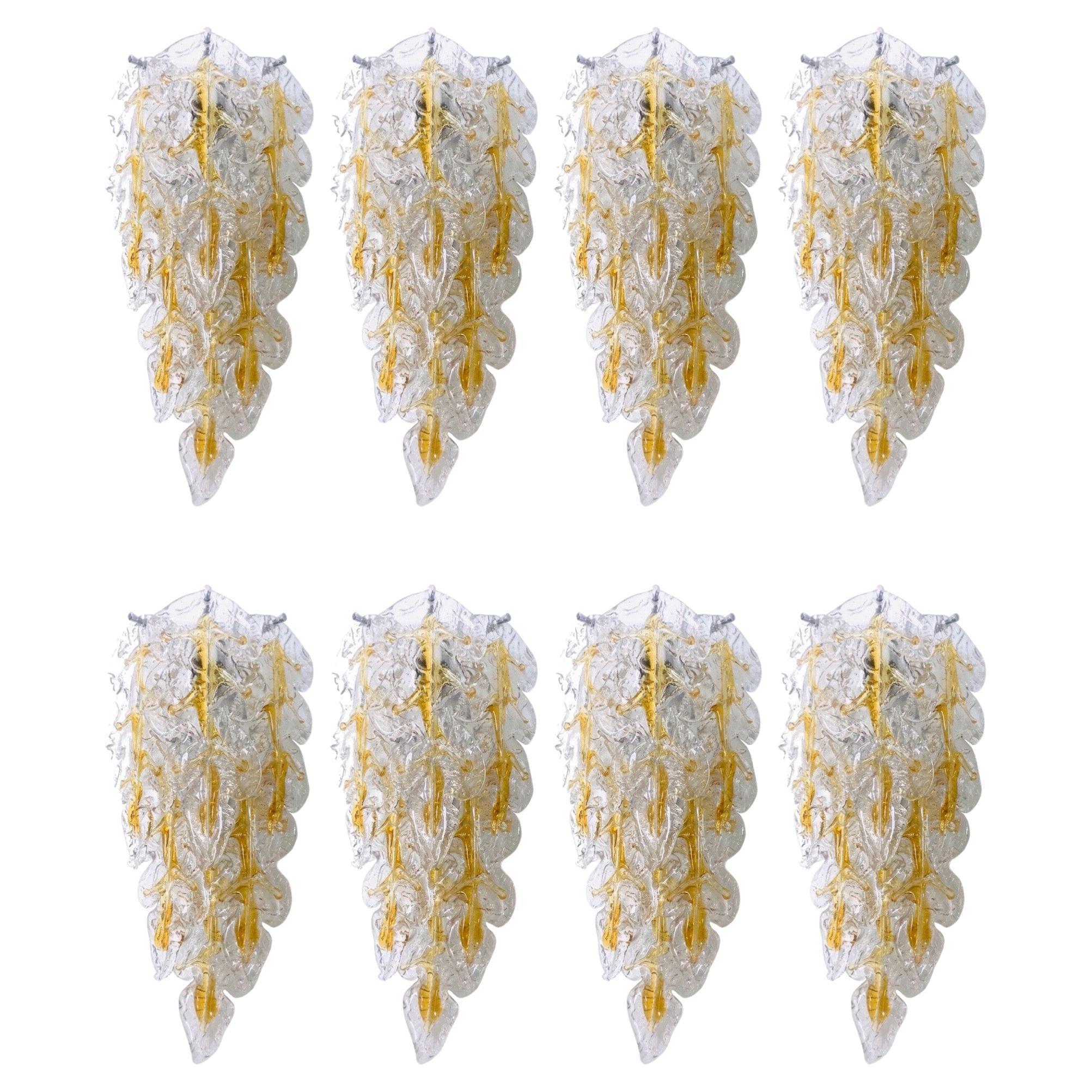 Juego de ocho apliques de pared italianos de Murano en forma de hoja, de Mazzega, años 70