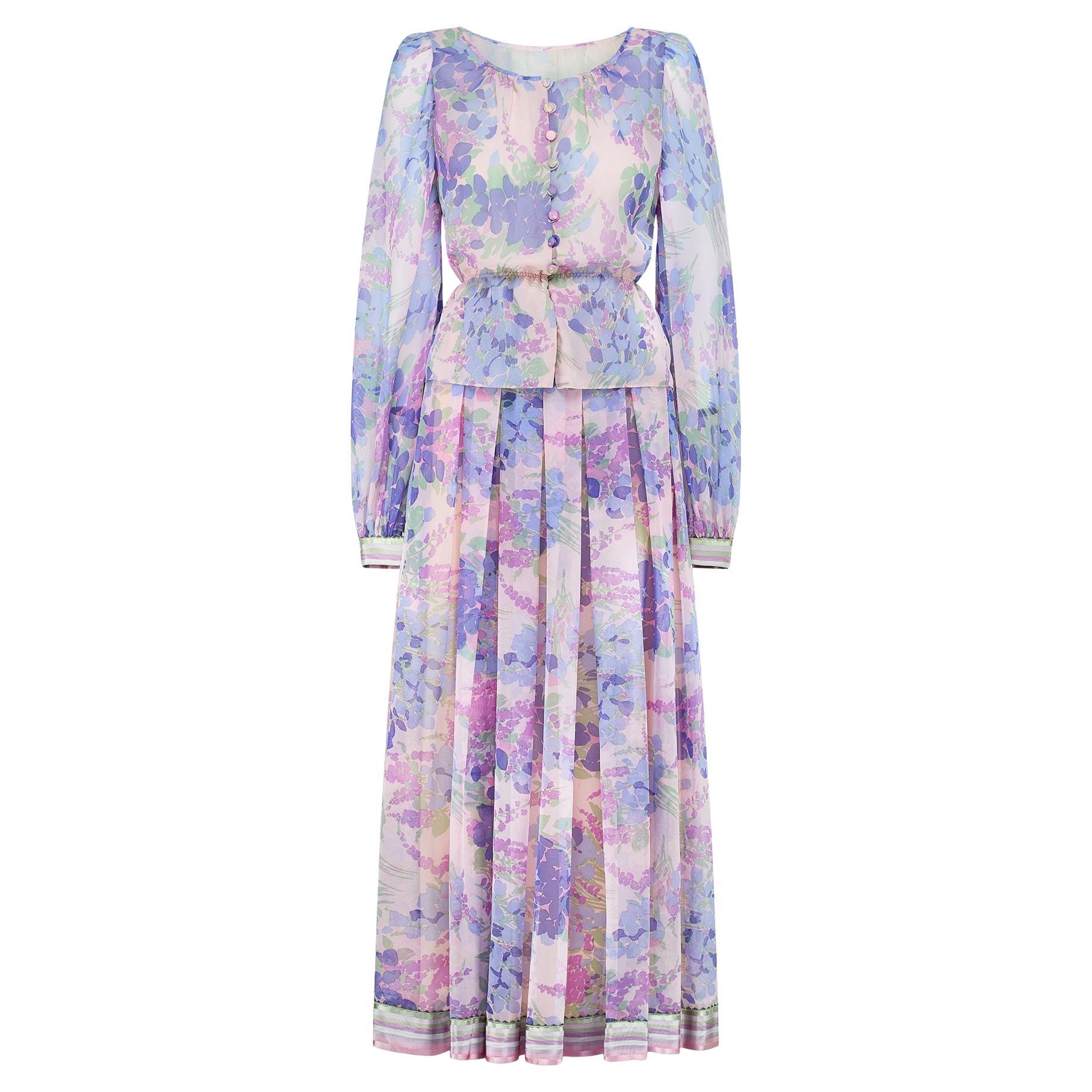 Traje de 1970 Mignon Maxi Falda de gasa floral lila