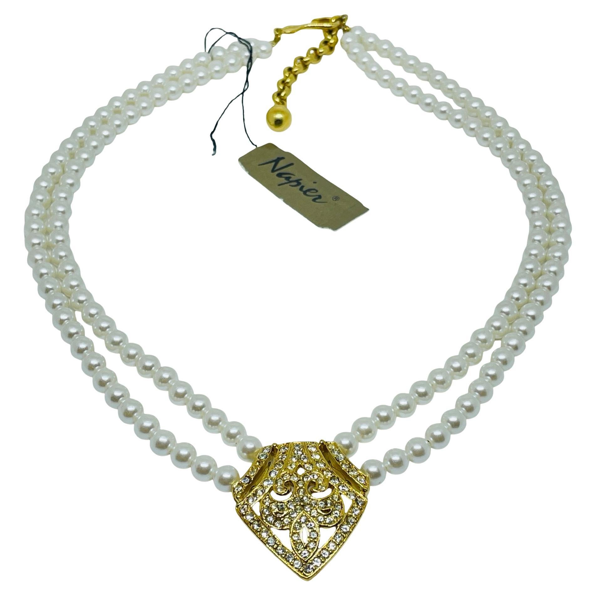 NAPIER collar de cuentas de diseño vintage firmado en oro con perlas y strass