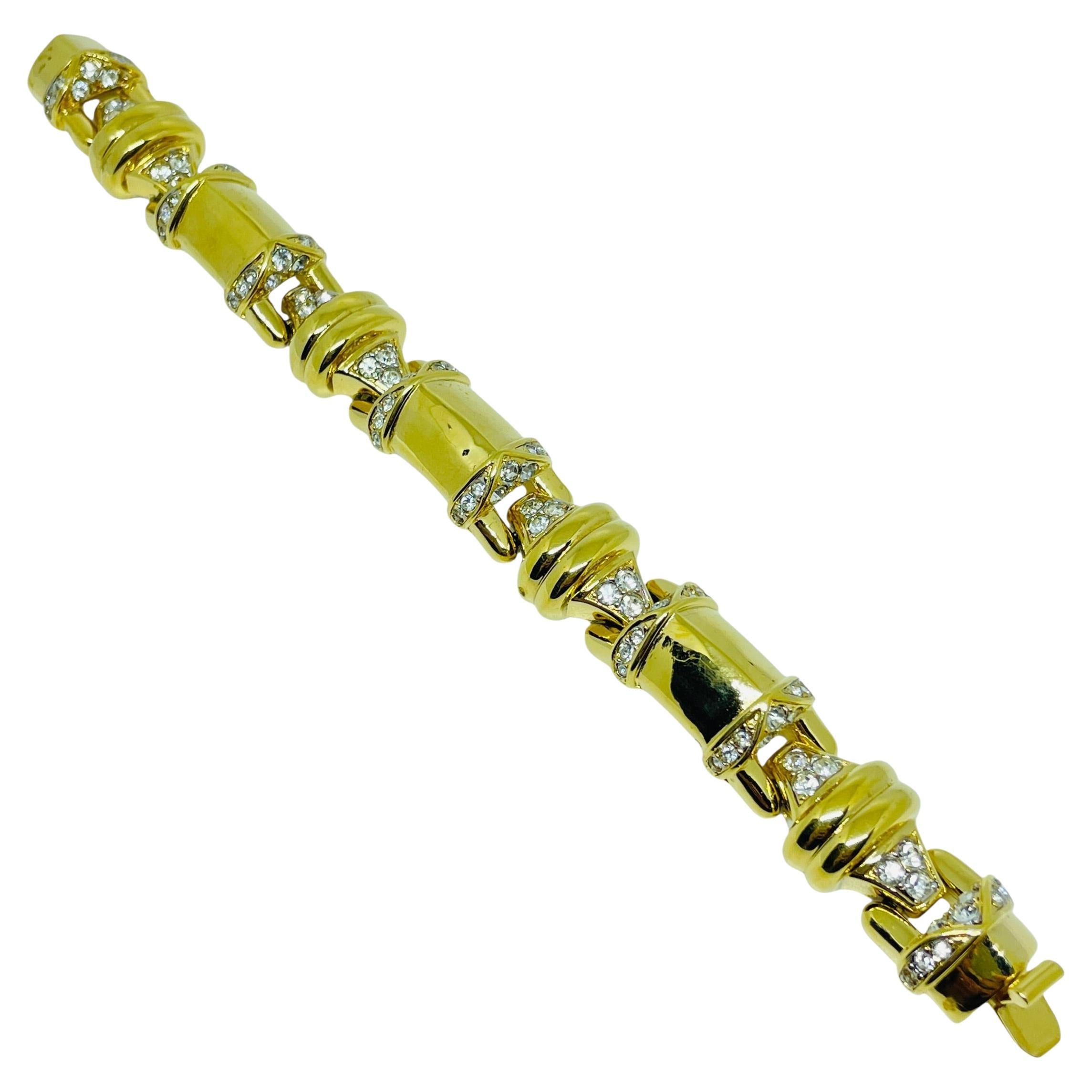 NINA RICCI pulsera de eslabones de diseño vintage firmada con brillantes en tono dorado