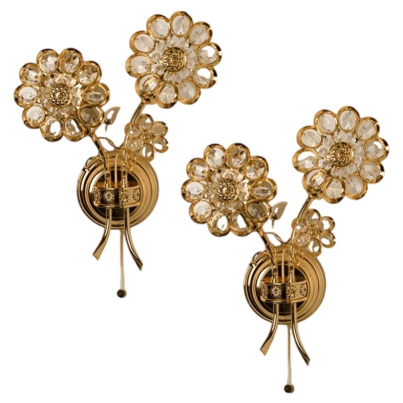 Ernst Palme Gran Palmera Floral, Latón Dorado, Cristales, Años 70