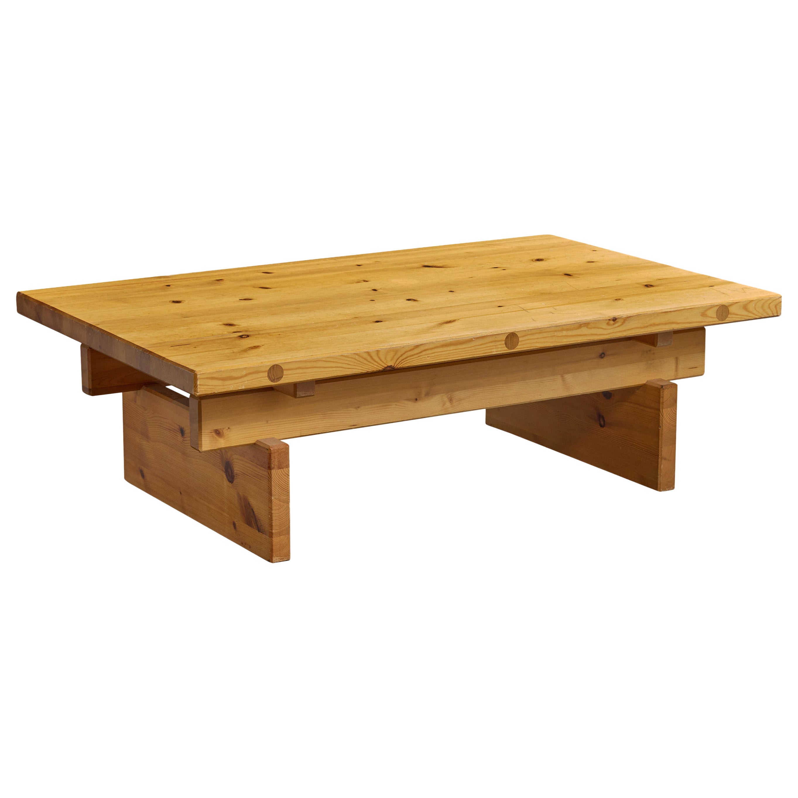 Mesa de centro de pino diseñada y fabricada por Roland Wilhelmsson, Suecia, c. 1970. Pequeños arañazos superficiales. Desgaste propio de la edad y el uso. Dimensiones totales (pulg...