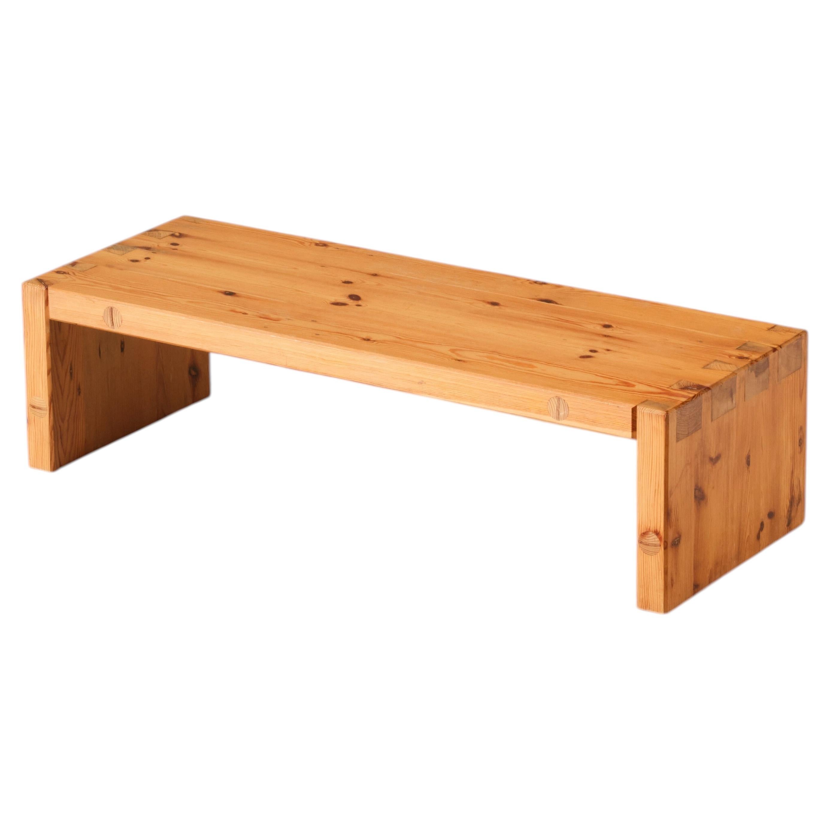 Mesa de comedor de pino macizo, hecha a mano, con tablero de madera de testa rara con hermosas vetas. Roland Wilhelmsson, década de 1970, Suecia.