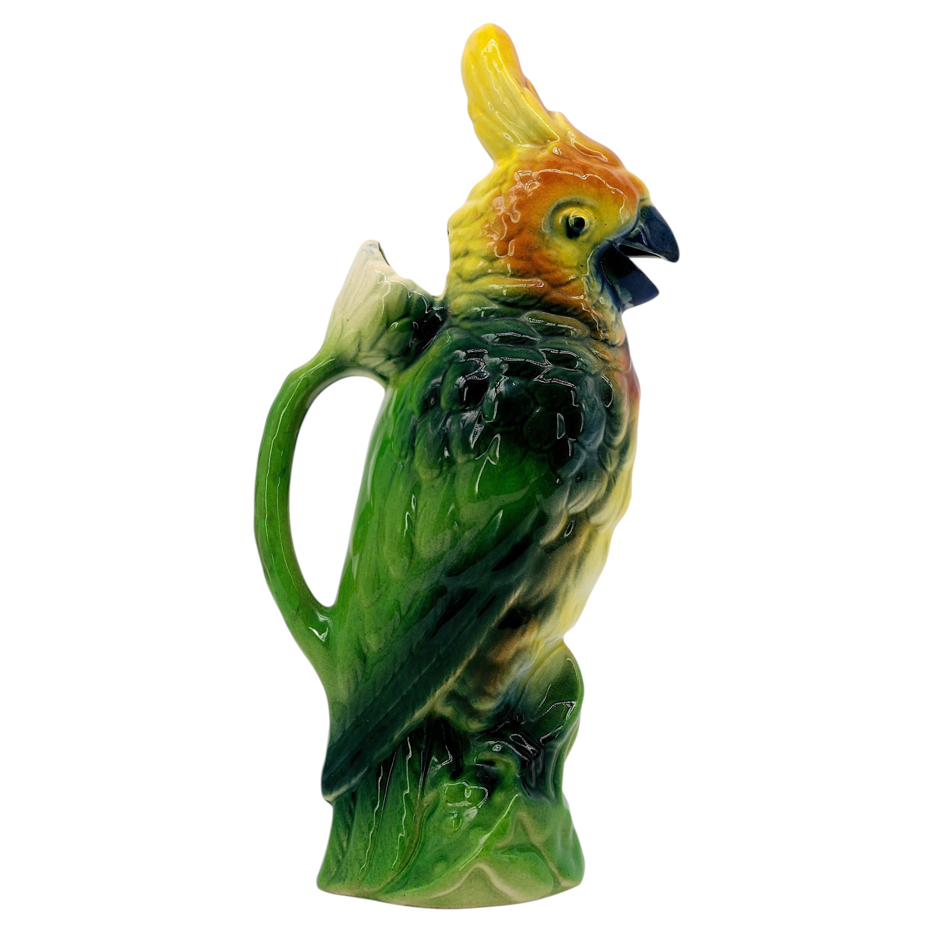 Jarra decantadora de absenta de loro de mayólica Saint Clement francesa de mediados de siglo