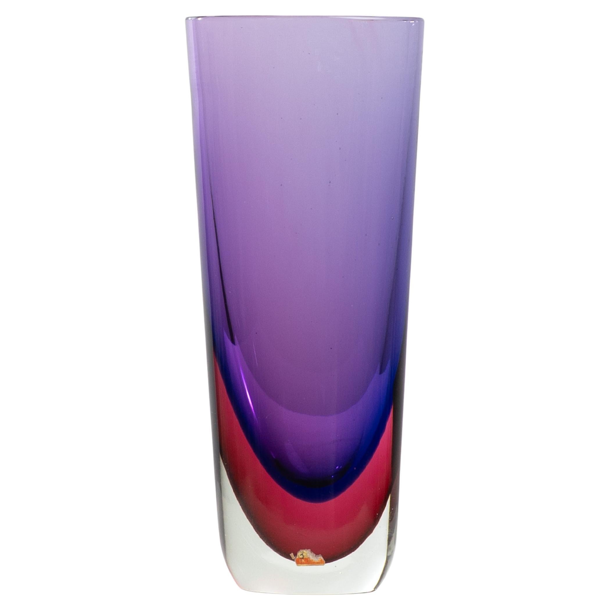 Un llamativo y escaso jarrón de cristal bloque Murano Sommerso diseñado por Flavio Poli en la década de 1960. Esta elegante pieza muestra la maestría característica de Poli en la téc...