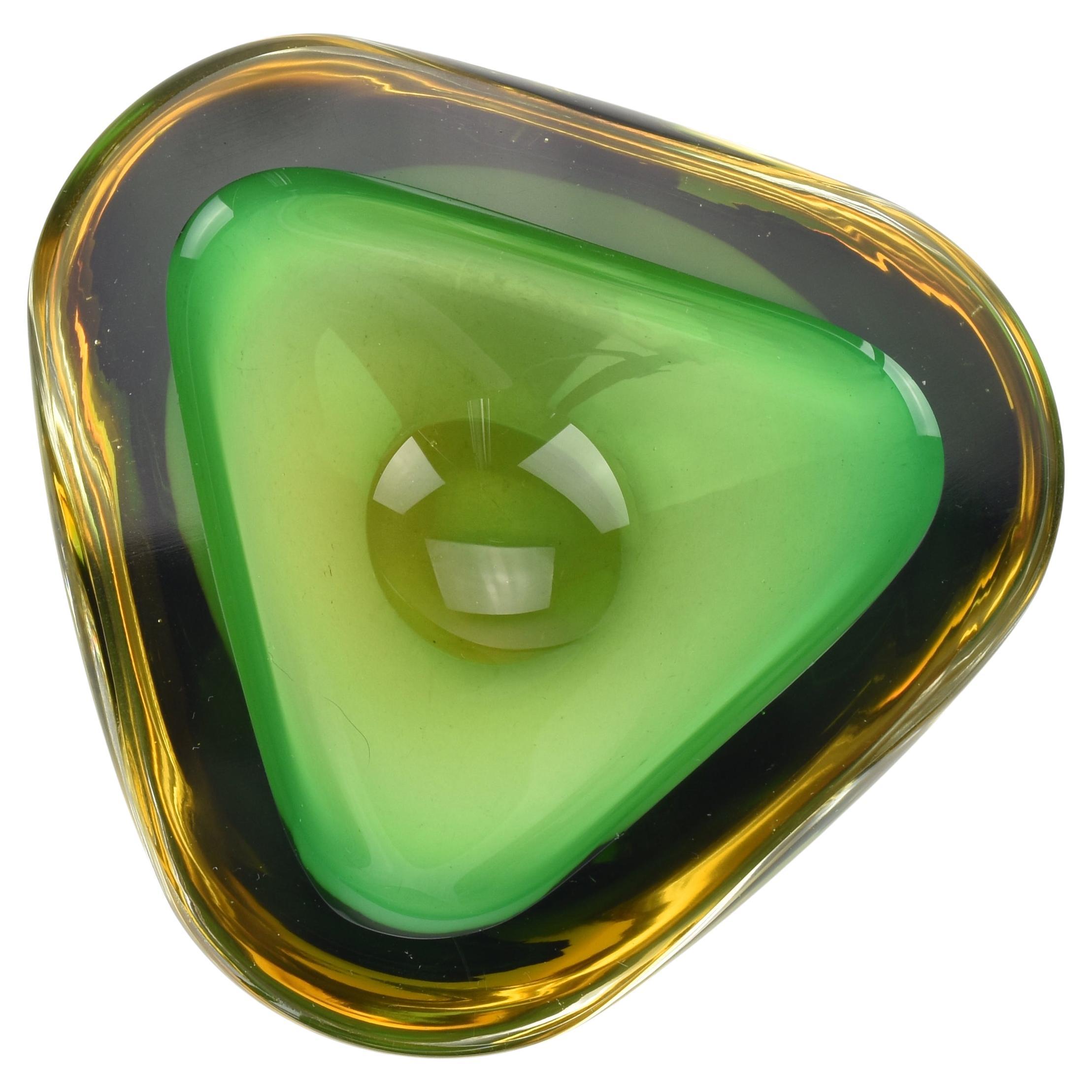 Escaso Jarrón Sommerso de Vidrio Bloque Verde, Amarillo y Transparente de Flavio Poli, años 60