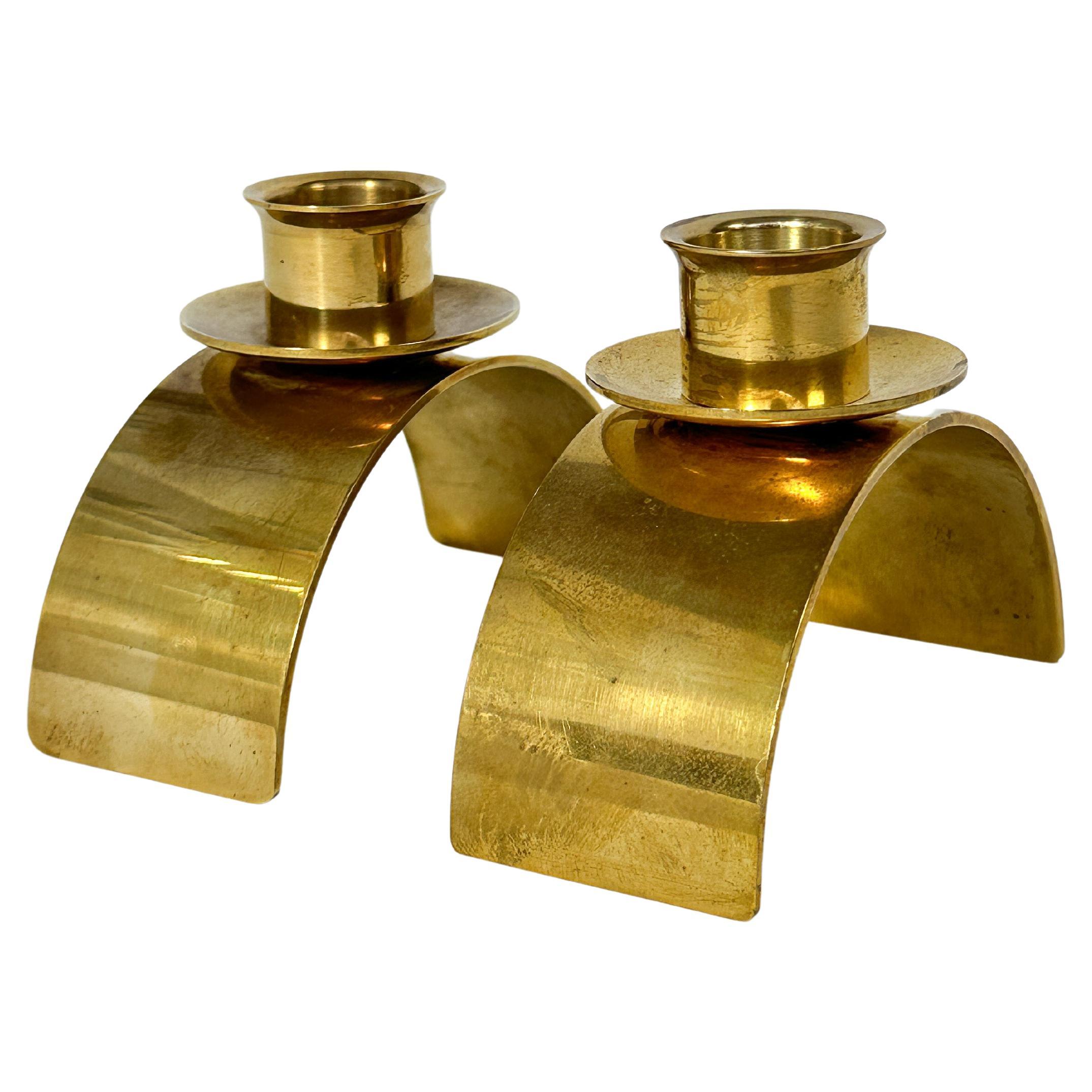 Pierre Forssell Pareja de candelabros "Arco" - Raro diseño de latón para Skultuna, Suecia