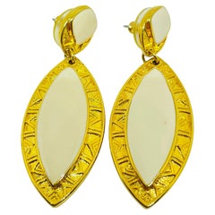 Estos fabulosos pendientes de clip de Dominique Denaive Paris tienen una forma de resina colgante con largas gotas y elementos de forma libre en preciosos colores naranja, morado y d...