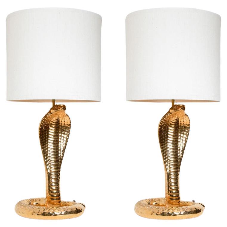 Pareja de grandes lámparas de sobremesa de latón reformado Tommaso Barbi, Italia, 1970