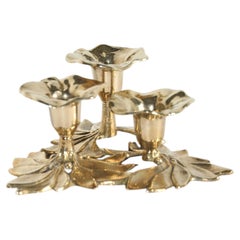 Candelabro triple Art Nouveau diseñado por Antonella Caprio Saviato, Italia, años sesenta. Totalmente de latón macizo, representa un ramo de 3 flores de Lys como portavelas y varias ...