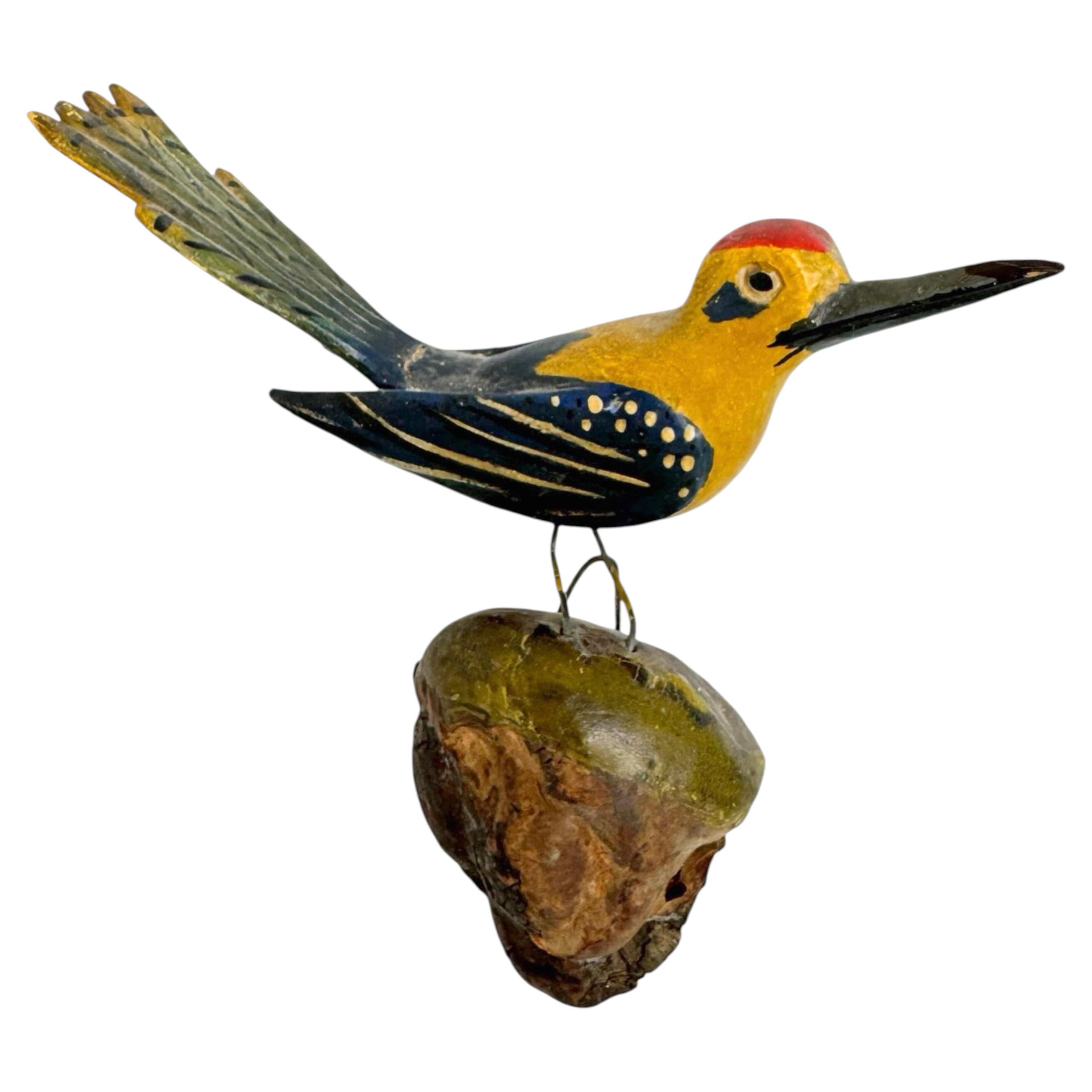 Precioso pájaro austriaco del siglo XX tallado en madera, montado en su soporte original y diseñado para colgar. Esta encantadora pieza de arte popular pertenece a la antigua tradici...