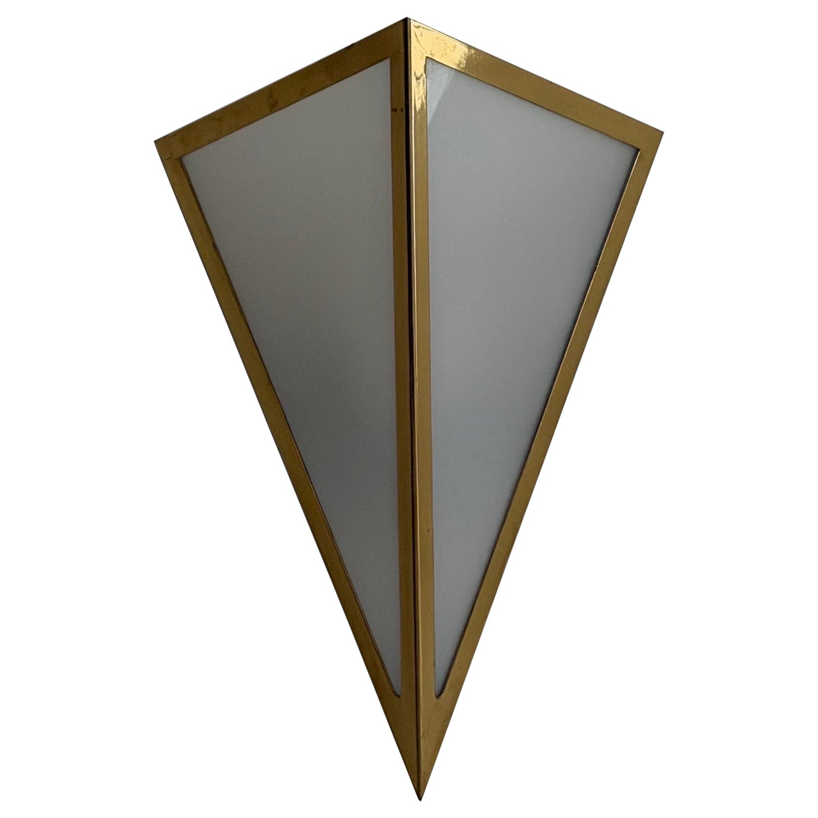 Lámpara de diseño triangular de cristal opalino y latón de WKR, años 70, Alemania