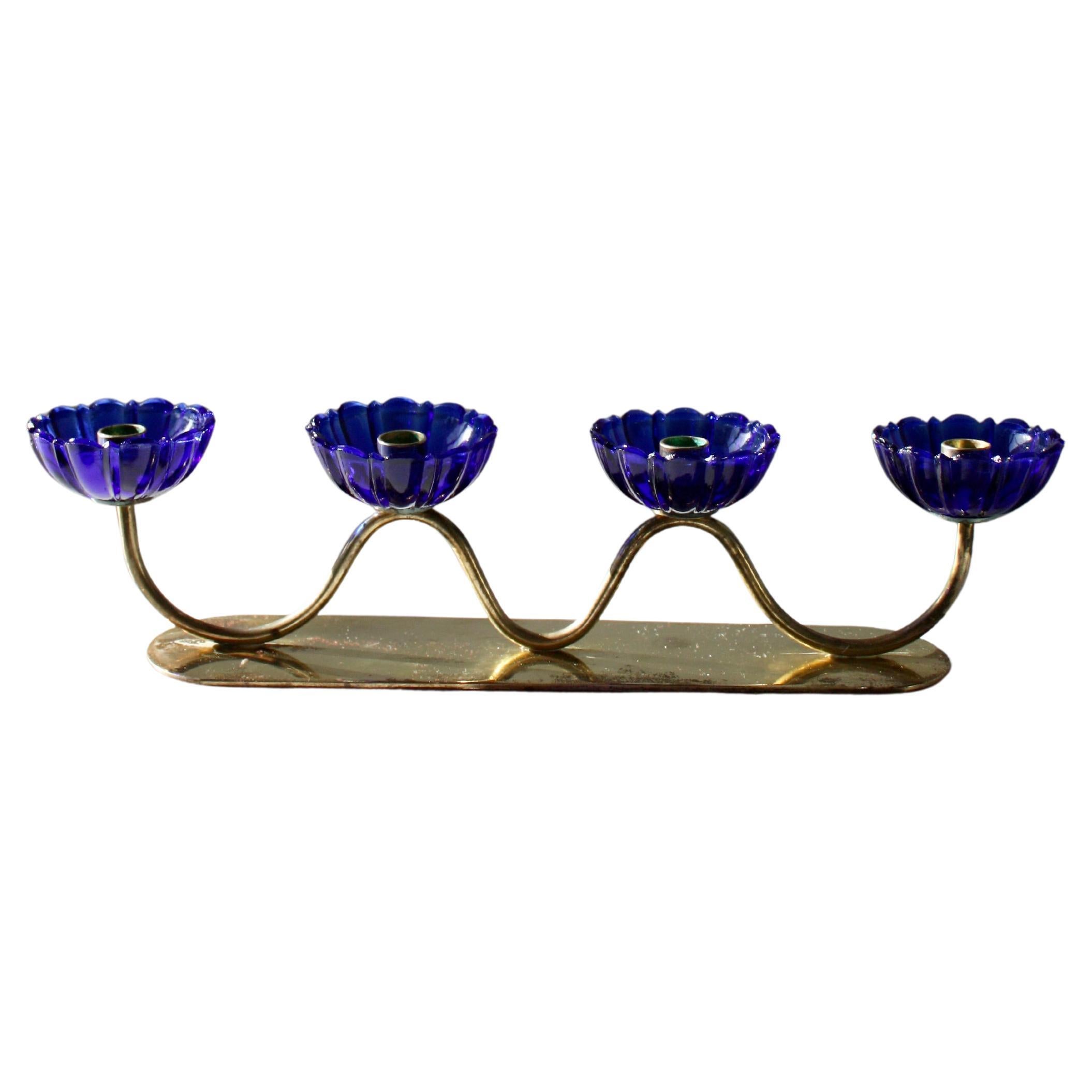 Gunnar Ander, Pareja de candelabros, latón, cristal, Ystad Metall, Suecia, años 50