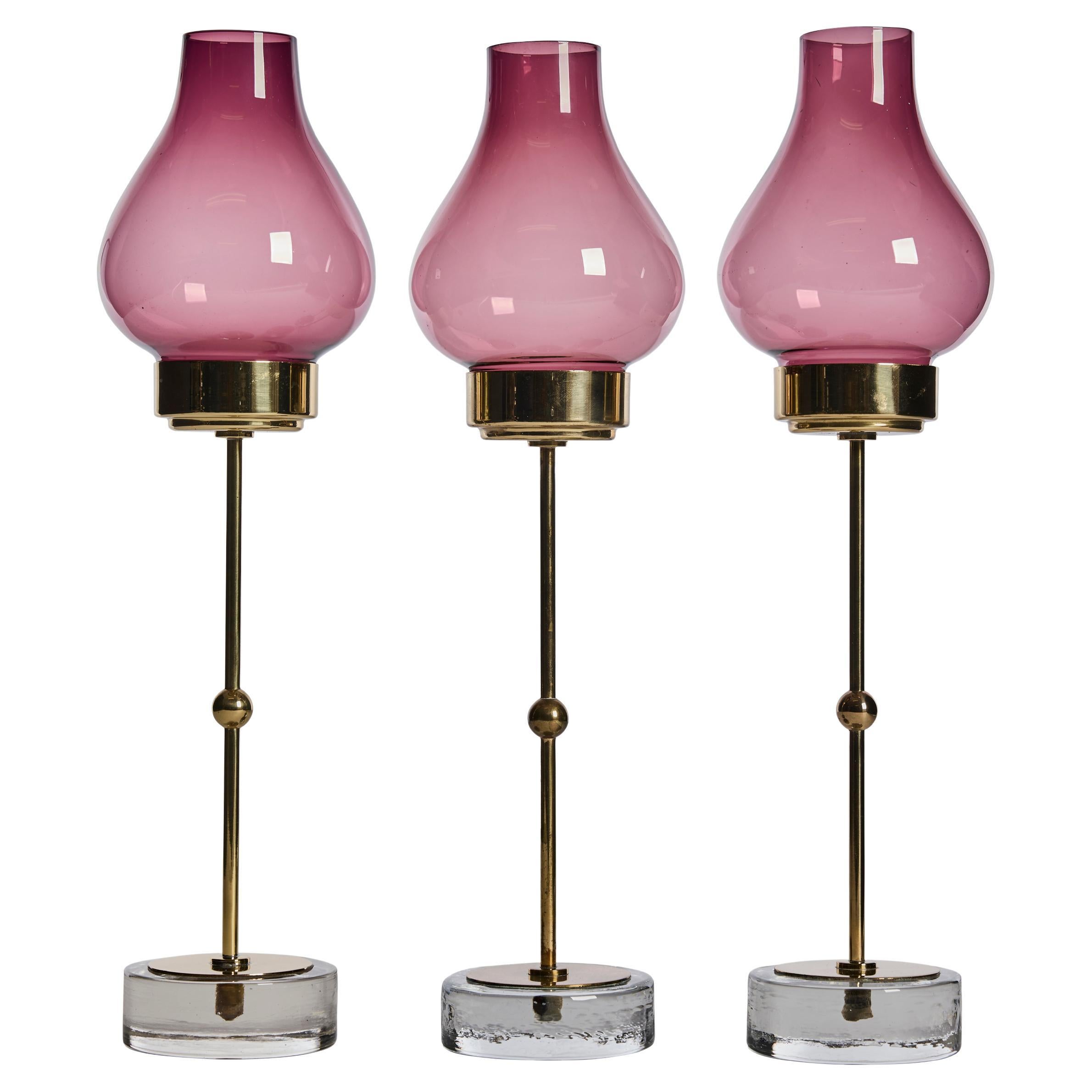 Tres portavelas suecos modernos de color púrpura de Gunnar Ander para Ystad Metall, años 50