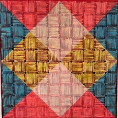 Martin Pelenur Pintura abstracta geométrica Rojo Azul Amarillo Desnudo Cuadrícula de diamantes