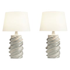 Pareja de lámparas de cerámica blancas "Strates" de Design Frères