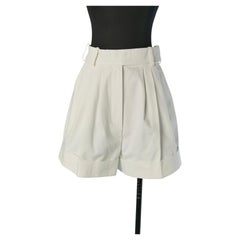 Pantalón corto de algodón blanco. Cierre oculto de cremallera y corchetes en la parte superior central delantera . Cierre a presión oculto en el lateral bajo el cinturón. Bolsillo en...